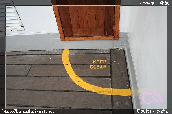 船上所有的門,都是標示會打開的範圍,所以要小心這黃線區域